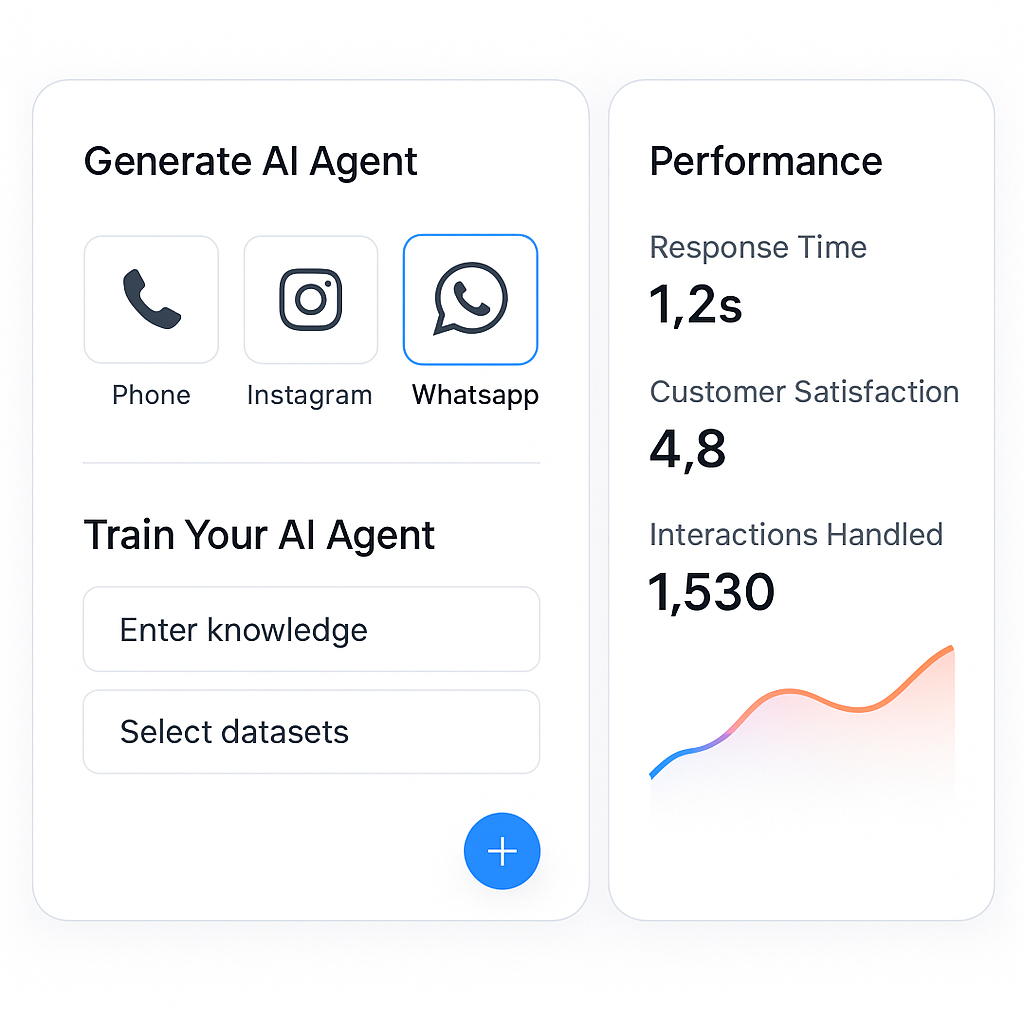 Der Chatbot kann direkt auf deiner Website und zusätzlich mit WhatsApp sowie Instagram- und Facebook-Nachrichten eingebunden werden.